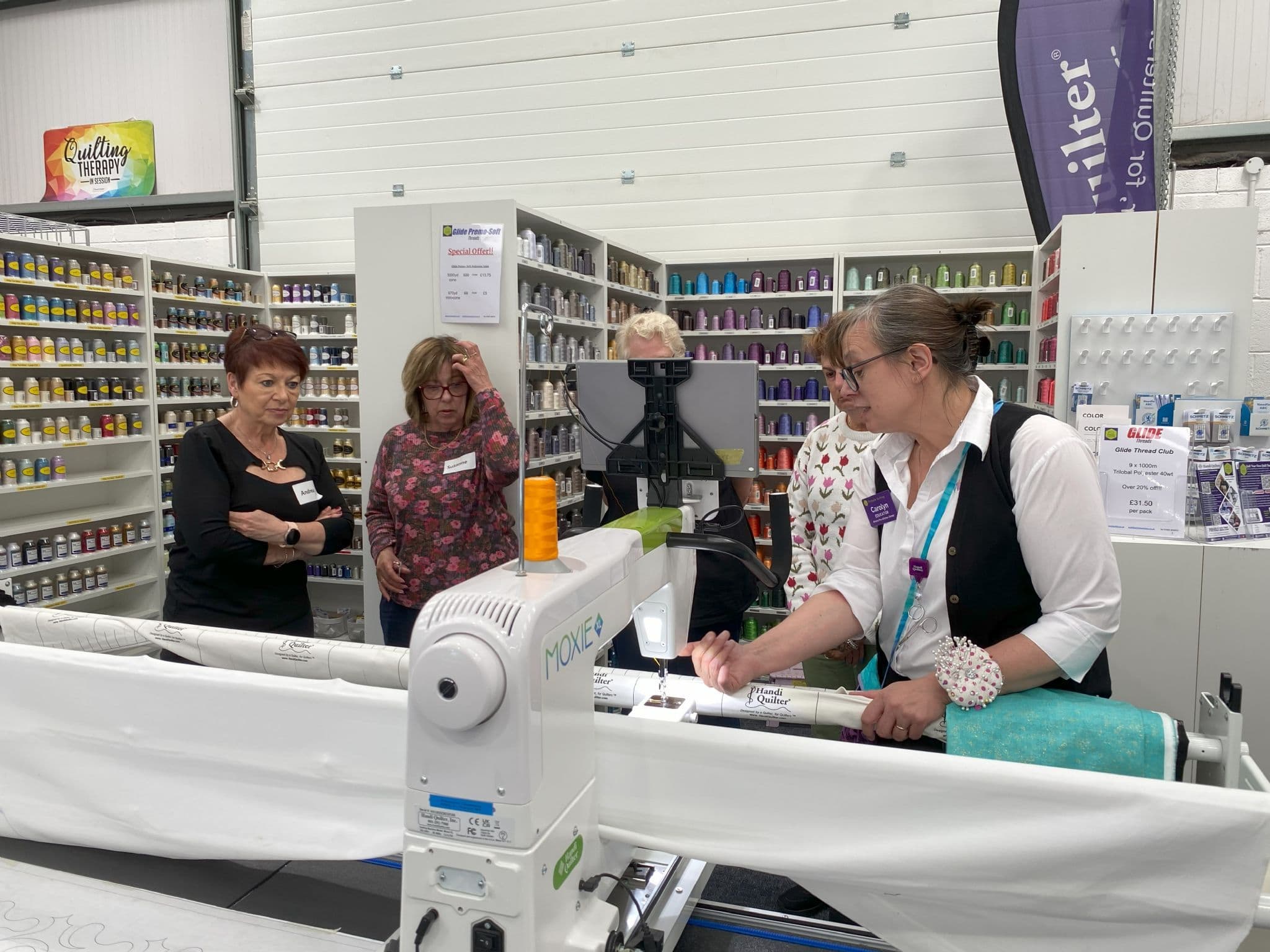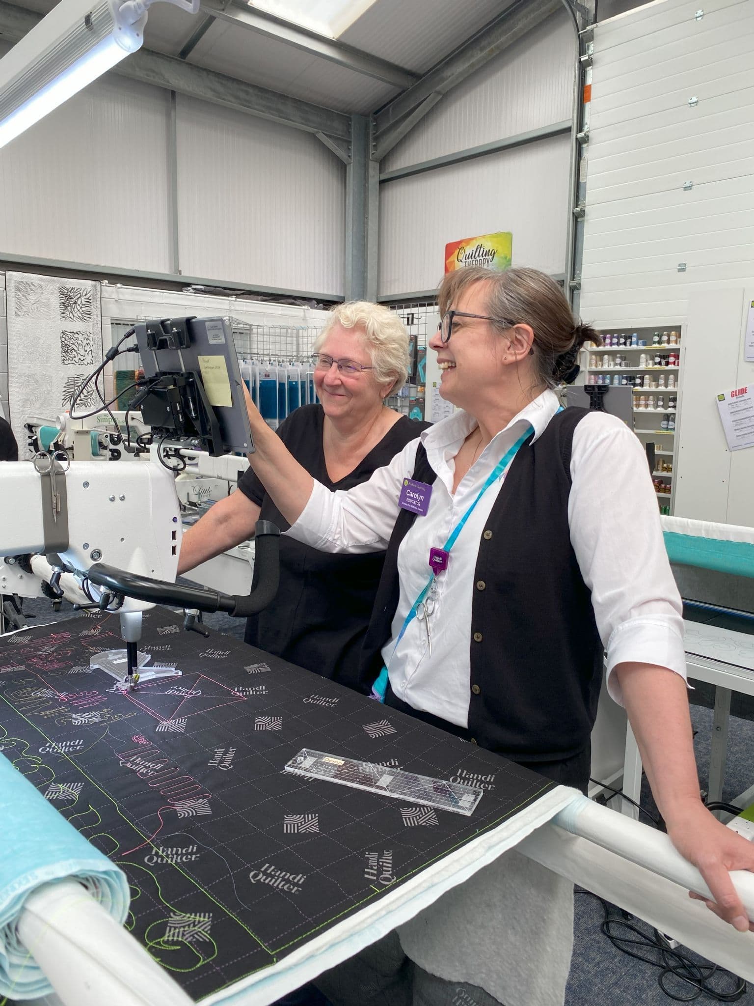 For Handi Quilter Owners Only. If you are interested in purchasing a Handi Quilter our workshops at Festival of Quilts, Try Before You Buy or Showroom Open Days are a great way to find out more about using our Handi Quilter longarm machines. Or you can arrange a Test Drive at our Showroom - please email us at quilt@pinholequilting.co.uk to arrange.