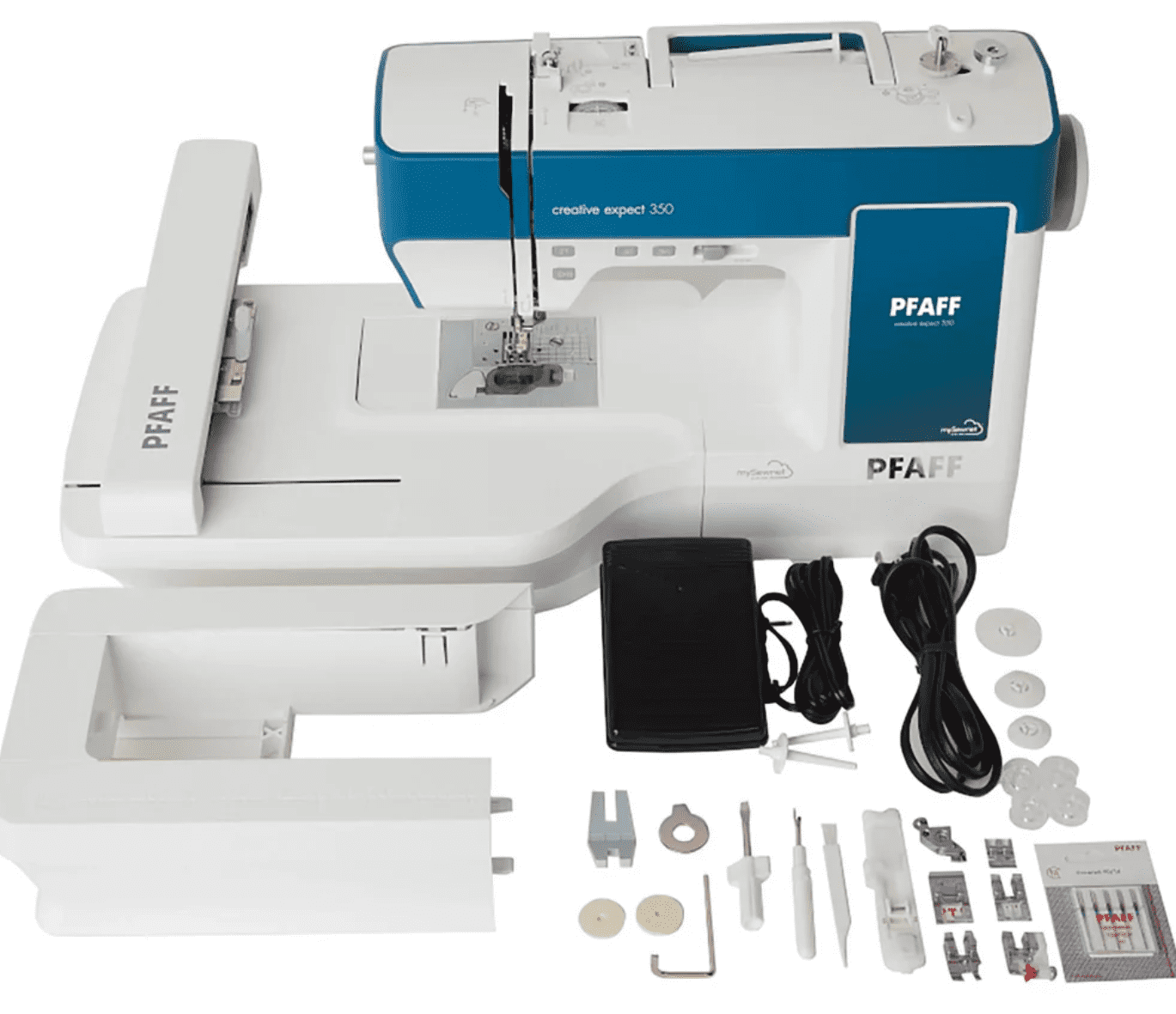 The PFAFF® creative expect ™ 350 sewing and embroidery machine has modern features making it possible to create customised design layouts. Get started with 20 complimentary accessories listed in What's Included below.