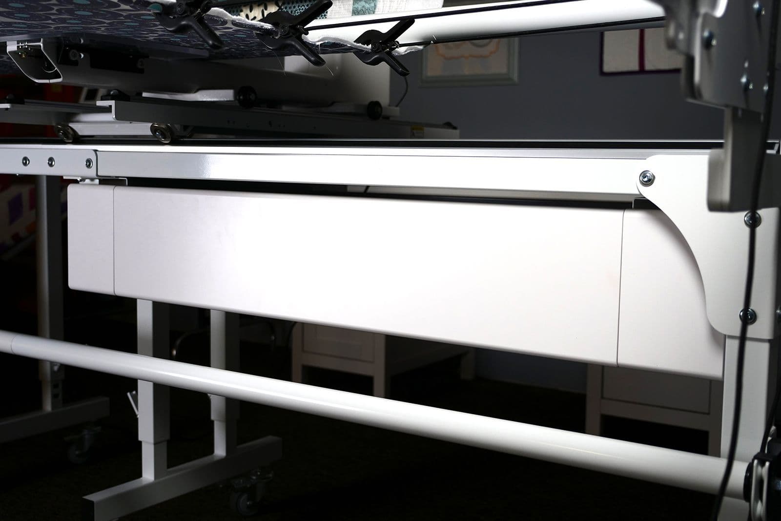 - Install up to 3 drawers per 12-foot frame (Note: Drawers clear the batting storage pole, but not the roll of batting. If you store batting on your frame, we recommend installing only one drawer.)