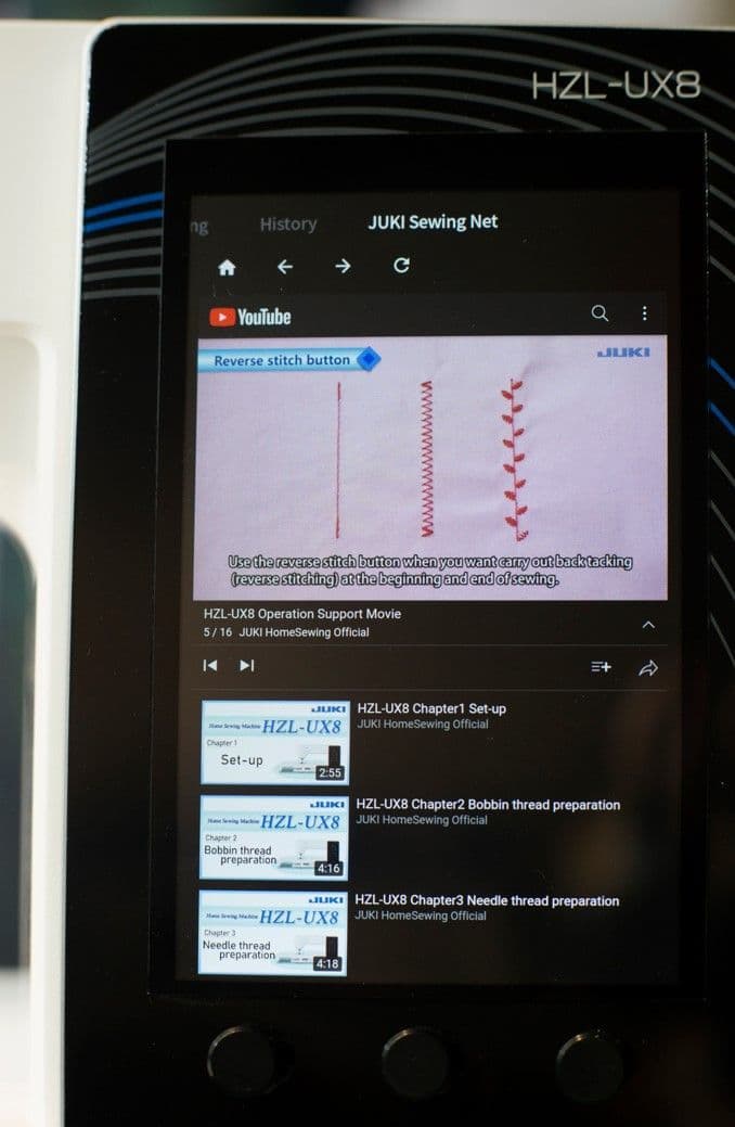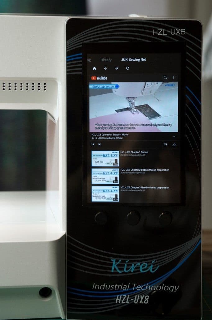7″ colour touch panel can be operated like a smartphone. Just like on a smartphone or tablet, intuitively select and edit patterns, change various settings, and view operation videos. With only the most important and frequently used operations available, the layout and user-friendliness of icons, etc., are revolutionary. Connect to the internet to access JUKI Sewing Net from your sewing machine! From the Sewing Net, you can access JUKI’s homepage where you may view projects, product information, and more. In addition, you can watch instructional videos of projects and/or sewing machine from JUKI’s YouTube channel.